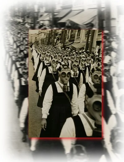 The concept of unbridled power and dominion is apparent in the advent of the gas mask - as an icon of such - on many other levels as well. In another session I will delve into the phenomena of the gas mask as a symbol of erotica and discuss why it is that the threat of domination from a soulless beast can be a way for certain people to get off on the sensual allure of complete and total ownership and consummation. For as many power hungry and bloodthirsty oppressors, there are at least as many who wish to be oppressed and this phenomena has given rise to an entire culture of adult fantasy aficionado's who are everywhere within mainstream society, though they are in fact hidden in a dark place where their secret actions are seldom seen and only whispered about in the most private of conversations.
