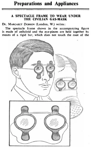 In any event, these days we do have an insert that can be used to give you the opportunity to wear your glasses under your gasmask; however, this is an uncomely and burdensome thing and is the same design, roughly, of what they had come up with as far back as WWI when the use of gasmasks became prolific. I have discovered, firsthand, the folly of using a set of contact lenses with a gasmask. The biggest problem with this insert is the fact that it has to be completely dedicated to the gasmask, (it can serve no other purpose or function), and as such isn't necessarily considered a reasonable accomodation under the Americans with Disabilities Act.